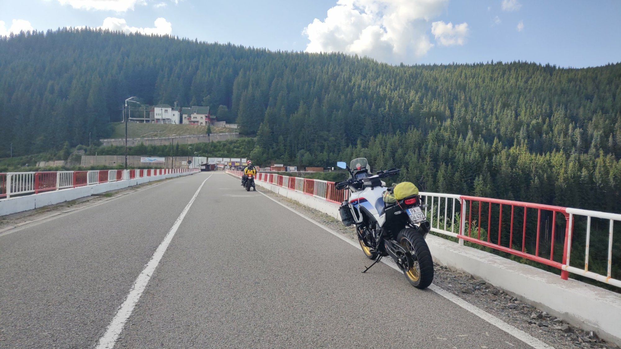 Dok se vozimo pretiče nas kolega Rumun na GS-u. Ništa, pratimo ga jednoglasnom odlukom 🙂 Dobrih desetak minuta idemo za njim u stopu, ostajemo fino u našoj traci. Put odličan, suv, gume stabilne – grizemo asfalt i uživamo.